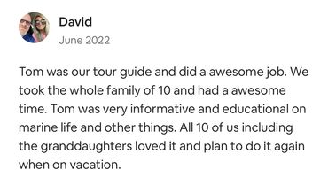 Take a tour with a knowledgeable guide an expert on everything marine. He will guide you to the islands, explore marine life and enjoy viewing coastal birds and boats. Pictures with the sunset in the background while your in your kayaks are priceless!!!