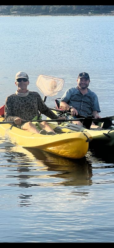We have 9 fishing kayaks available each with 2 rod holders and a lockable hatch. We are experts on fishing. We will give you guidance where to fish & what bait to use. There's a variety of Saltwater species in our bay including Redfish, Speckled trout, Flounder, Jack Crevalle, Mackerel, Sheepshead ect.. start as early as when the sun comes up. Call to book your fishing excursion!